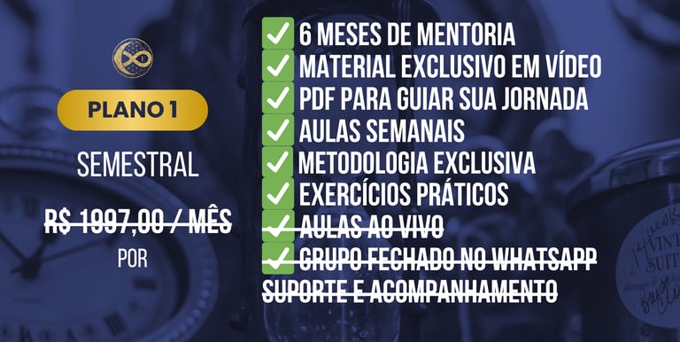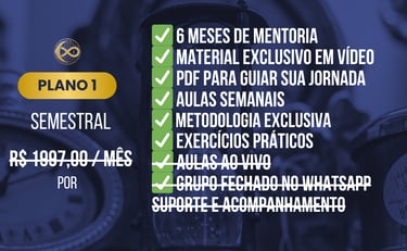 É uma mentoria individual ou em grupo, de 3 a 6 meses, 100% direcionada para você construir um plano de ação, sair da inércia, do excesso de passado e acessar o futuro de sonhos realizados.